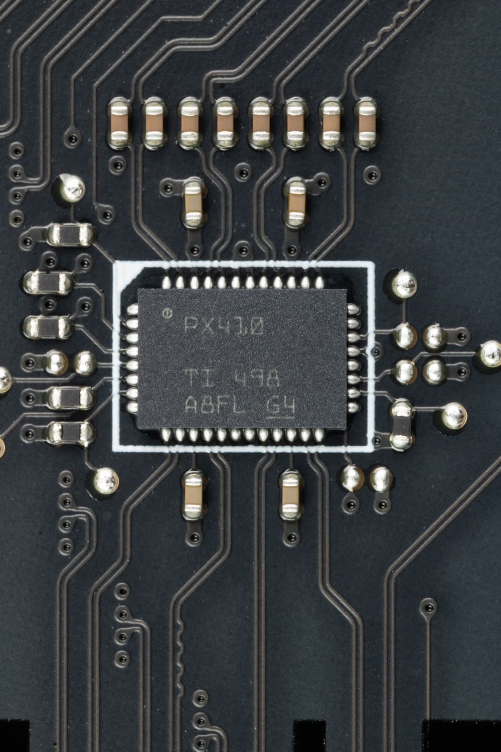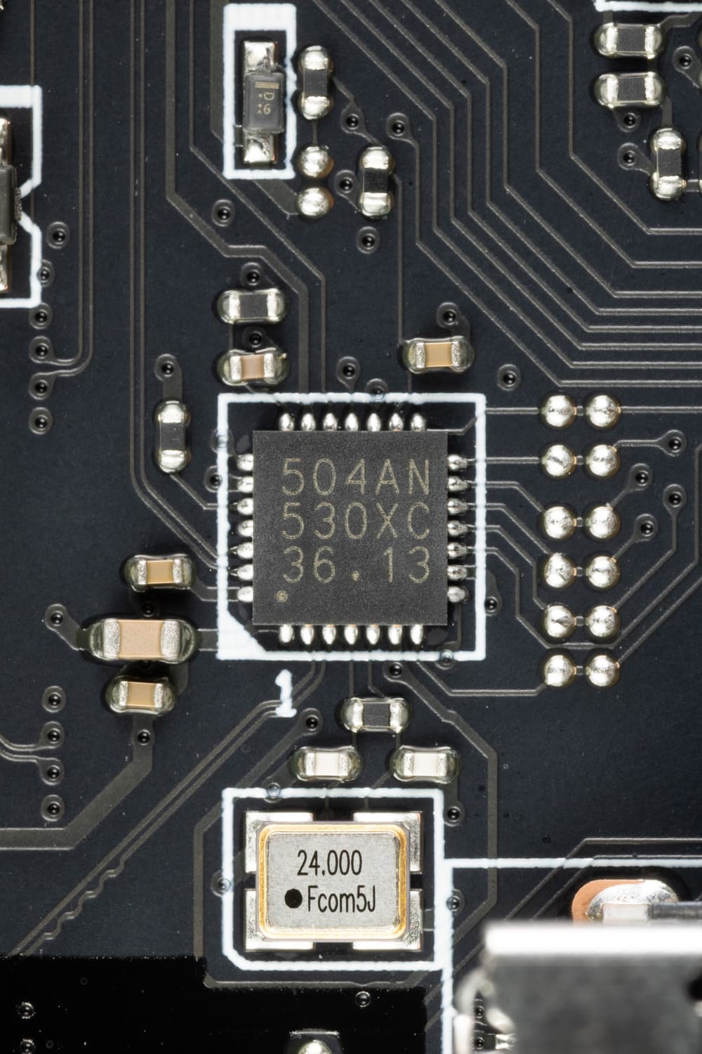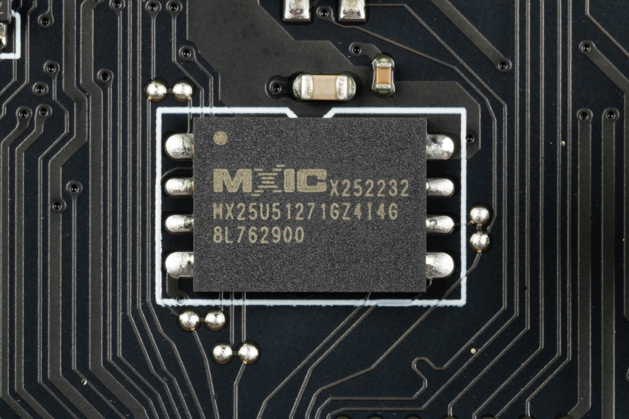 Каждый канал фазы имеет суперферритовый дроссель и в случае с VCore+SoC транзисторную сборку MP87670 от Monolithic Power Systems (до 80A).