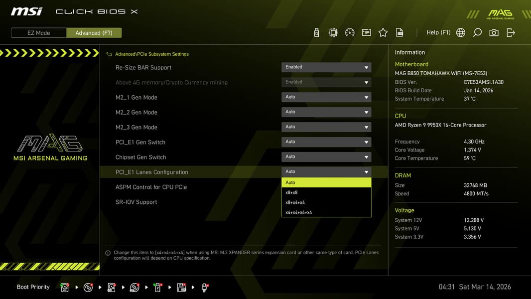 Следует особо обратить внимание в разделе на управление M.2 и слотами PCIe.