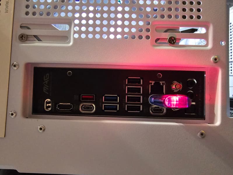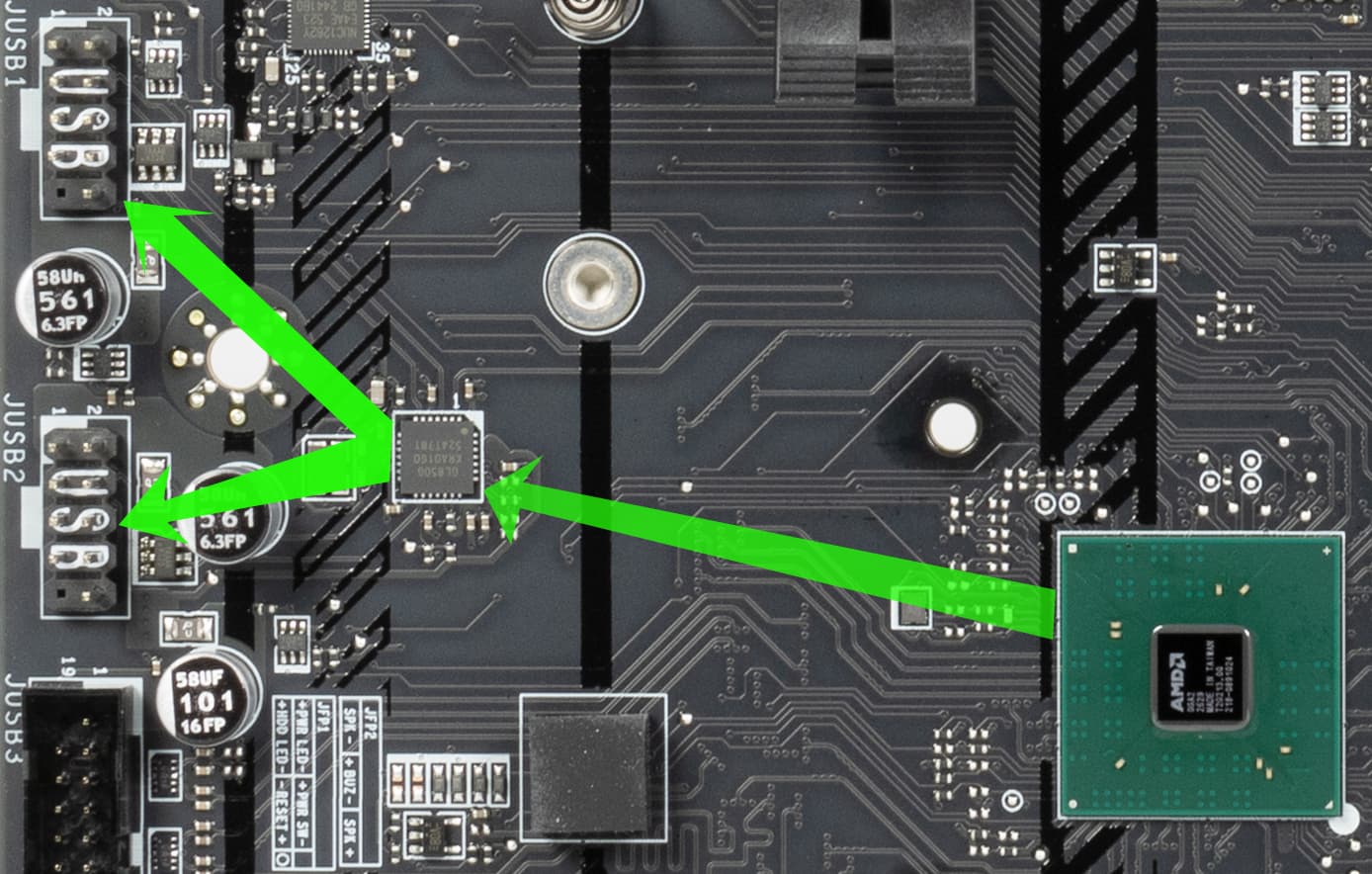 8 × USB 2.0: 2 внутренних разъема на 4 порта (GL850) + 4 порта Type-A (черные) (GL850G) 4 × USB 3.2 Gen1: 1 внутренний разъема на 2 порта (B850) + 2 порт Type-A (синие) (CPU) 4 × USB 3.2 Gen2: 2 порта Type-A (красные) (B850+CPU) + 1 порт Type-C (CPU) + 1 внутренний разъем Type-C (B850) 1 × USB 3.2 Gen2x2: 1 порт Type-C (B850)
