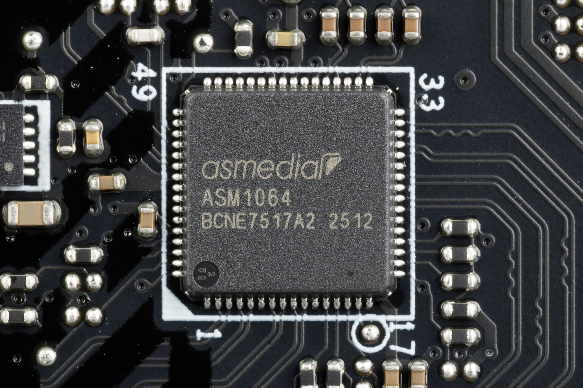 4 × SATA 6 Гбит/с (ASM1064) 1 × M.2 (M.2_1, CPU, PCIe 5.0 x4 для устройств формата 2280/2260) 1 × M.2 (M.2_2, CPU, PCIe 5.0 x4 для устройств формата 22110/2280/2260) 1 × M.2 (M.2_3, B850, PCIe 4.0 x4 для устройств формата 2280/2260)