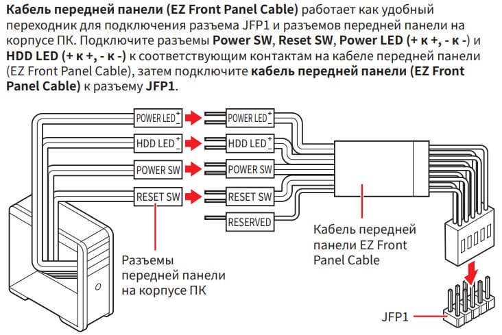 адаптер EZ Front Panel Cable для удобного подключения кабелей от корпуса к матплате,