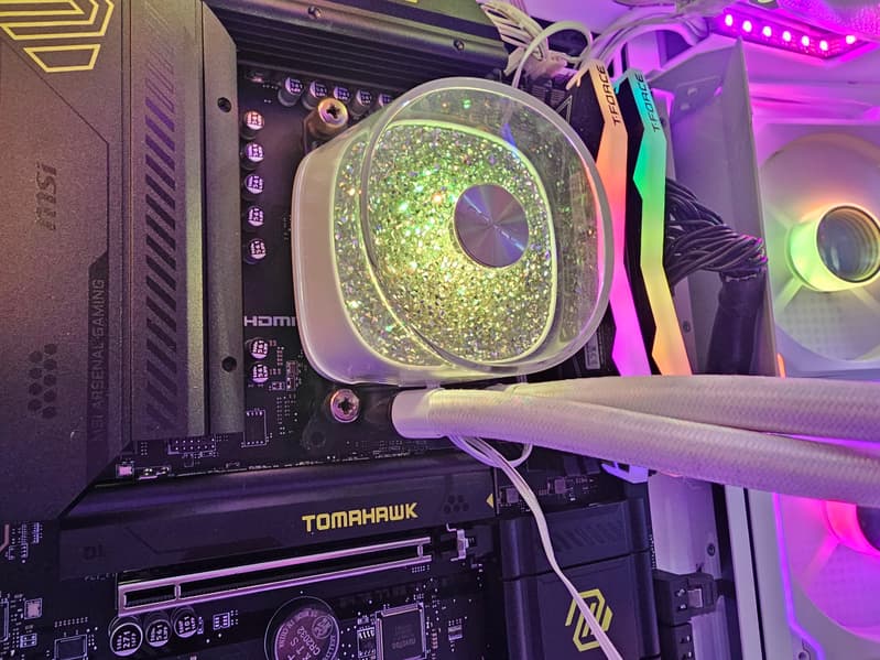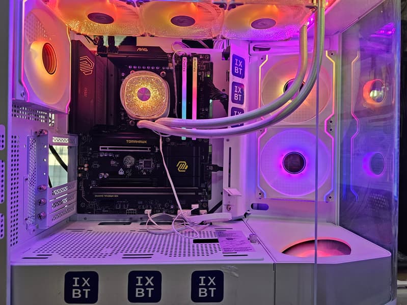 В арсенале платы также есть 4 порта SATA и 8 разъемов для вентиляторов. Система питания процессора хорошая, способная обеспечить работу даже топовых процессоров с разблокированным множителем с приличным запасом на разгон (имеется внешний тактовый генератор). Плата имеет адекватную систему охлаждения, все слоты M.2 снабжены радиаторами. Сетевые возможности включают скоростной проводной контроллер 5 Гбит/с и один современный беспроводной — Wi-Fi 7 + Bluetooth 5.4. В числе плюсов платы можно упомянуть возможности для подключения дополнительных RGB-устройств.