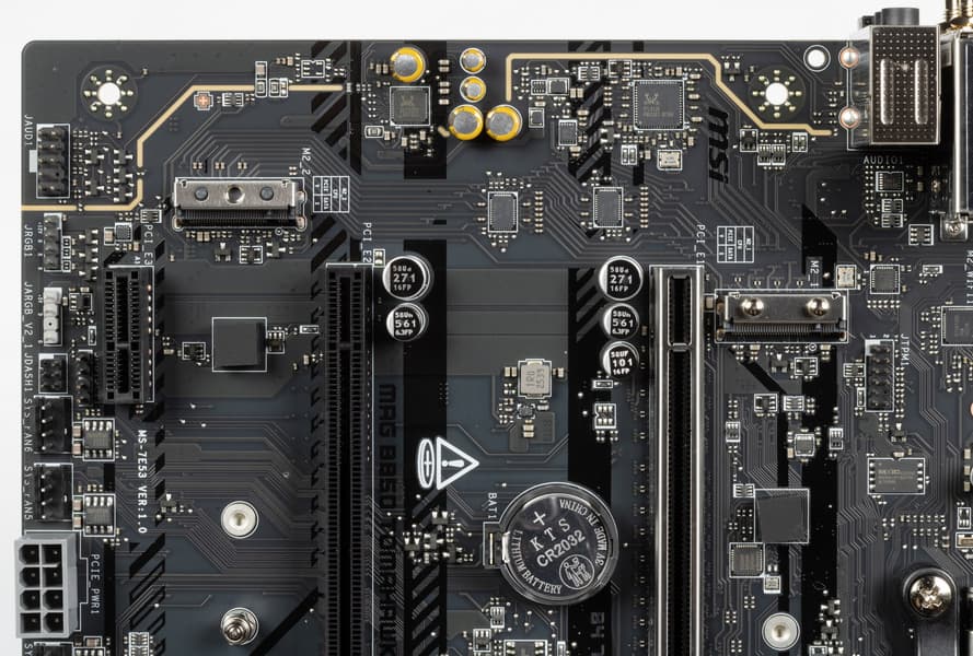 Форм-фактор ATX имеет размеры до 305×244 мм, а E-ATX — до 305×330 мм. Материнская плата MSI MAG B850 Tomahawk WiFi имеет размеры 305×244 мм, поэтому выполнена в форм-факторе ATX, и на ней имеются 9 монтажных отверстий для установки в корпус.