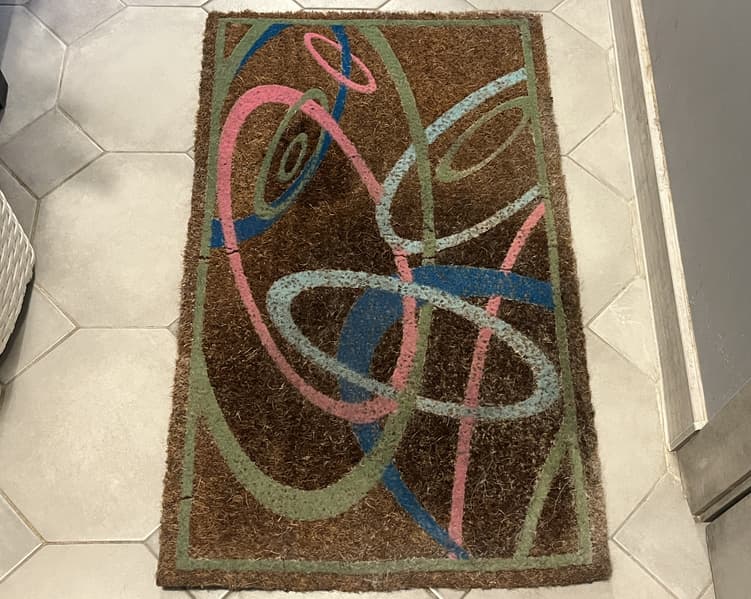 Первым делом мы взялись за жесткий синтетический ковер средних размеров, который пережил небольшой ремонт и уличную зимнюю грязь.