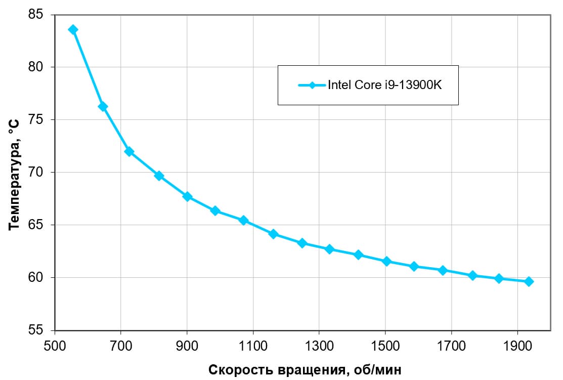 Полное описание методики тестирования приведено в соответствующей статье «Методика тестирования процессорных охладителей образца 2020 года». В данном тесте все ядра процессора Intel Core i9-13900K работали на частоте 3,7 ГГц.