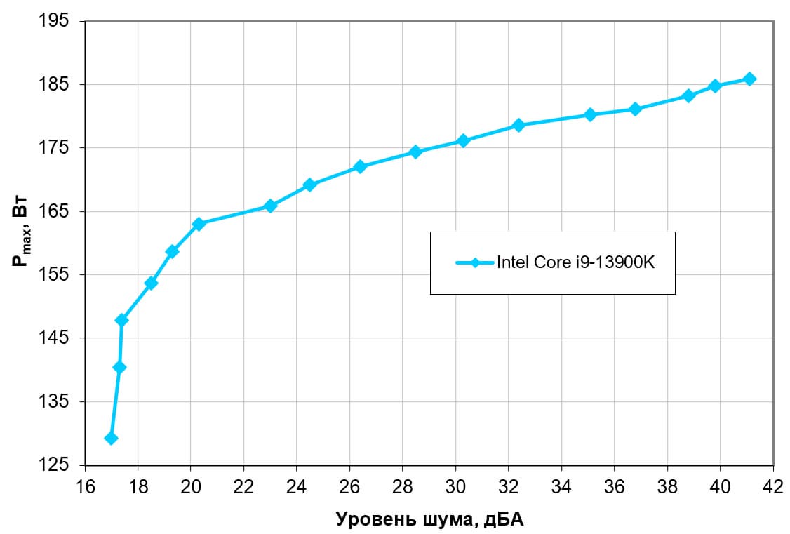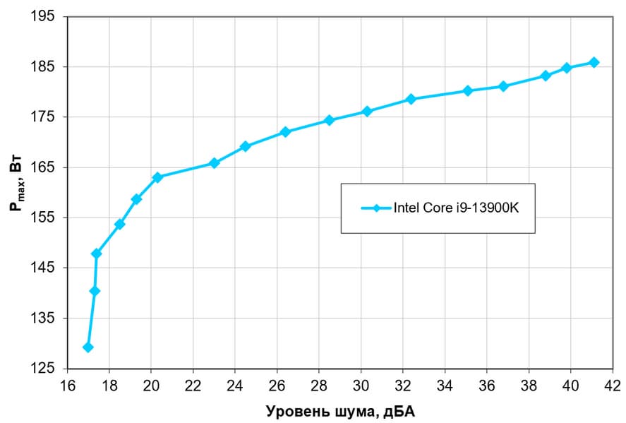 Приняв 25 дБА за критерий условной бесшумности, получим примерную максимальную мощность процессоров типа Intel Core i9-13900K, соответствующих этому уровню: 170 Вт. Гипотетически, если не слишком обращать внимание на уровень шума, пределы мощности можно увеличить, но, как нам кажется, это уже не слишком важно — там уже начинается ареал «двухбашенных» моделей, из которых «выжать» можно больше. А от основной массы собратьев благодаря второму вентилятору немного, но оторвались — то есть польза от него есть и сейчас.