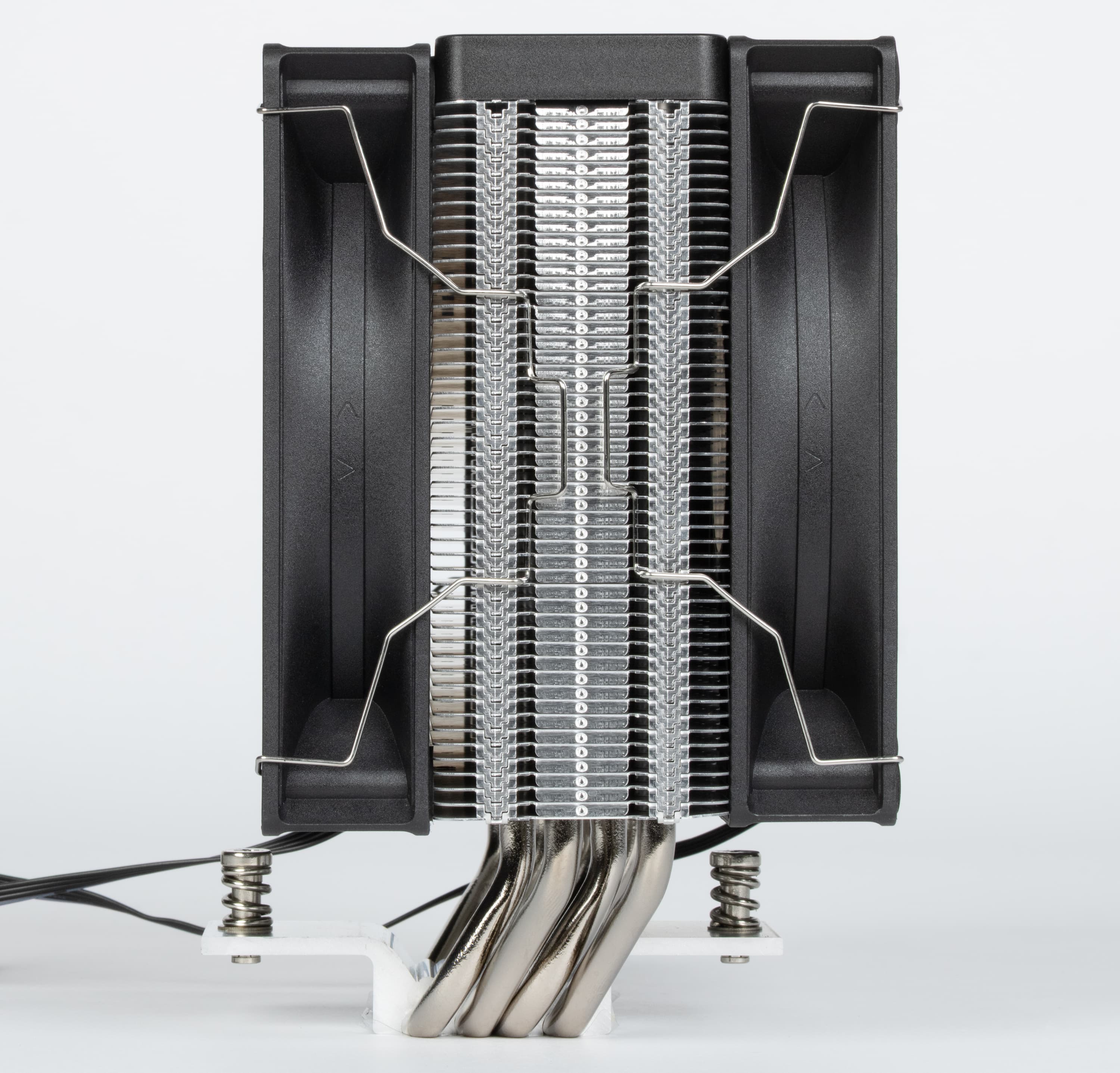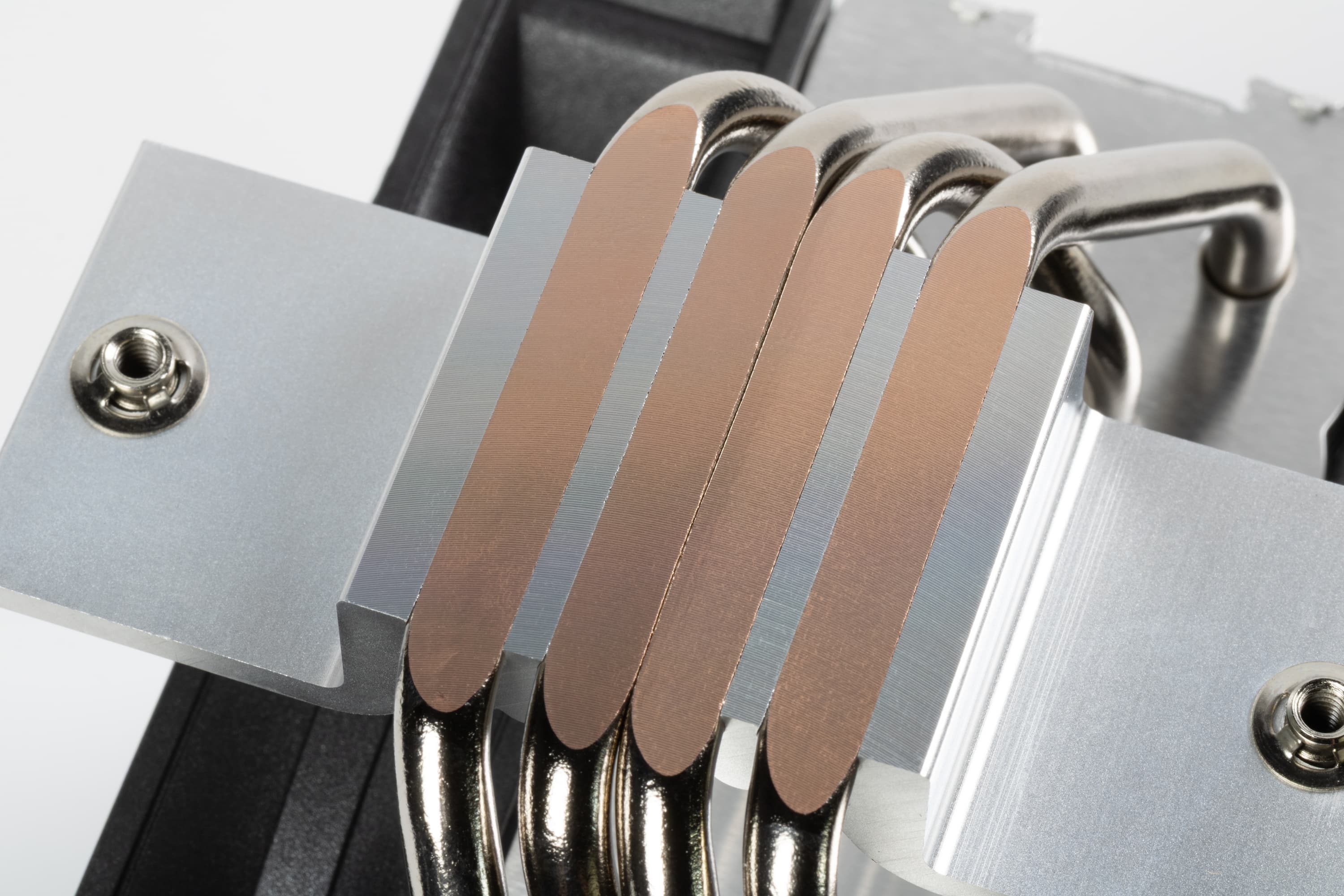 Кулер оснащен вынесенным радиатором, к которому тепло от теплосъемника передается по четырем тепловым трубкам диаметром 6 мм. Трубки медные, нижняя часть теплосъемника алюминиевая, но здесь это не имеет существенного значения — из-за прямого контакта трубок с крышкой процессора.