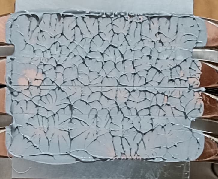 Видно, что термопаста распределилась тонким слоем по всей плоскости крышки процессора, а ее избыток выдавился по краям. Пятно плотного контакта большое.