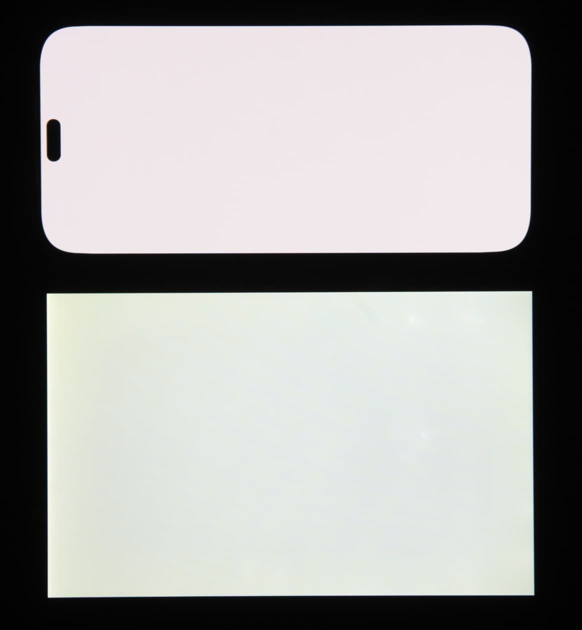 Экран характеризуется великолепными углами обзора. Яркость под углом у обоих экранов заметно уменьшается (если сравнивать с Nexus 7), но в случае смартфона падение яркости выражено гораздо меньше. В итоге при формально одинаковой яркости экран этого смартфона визуально выглядит гораздо более ярким (в сравнении с ЖК-экранами), так как на экран мобильного устройства часто приходится смотреть как минимум под небольшим углом. Правда, у смартфона белый цвет при отклонении на большие углы приобретает легкий сине-зеленый оттенок, но черный цвет остается просто черным под любыми углами. Он настолько черный, что параметр контрастности в данном случае неприменим. Для сравнения приведем фотографии, на которых на экраны смартфона и второго участника сравнения выведены одинаковые изображения, при этом яркость экранов изначально установлена примерно на 200 кд/м², а цветовой баланс на фотоаппарате принудительно переключен на 6500 К.