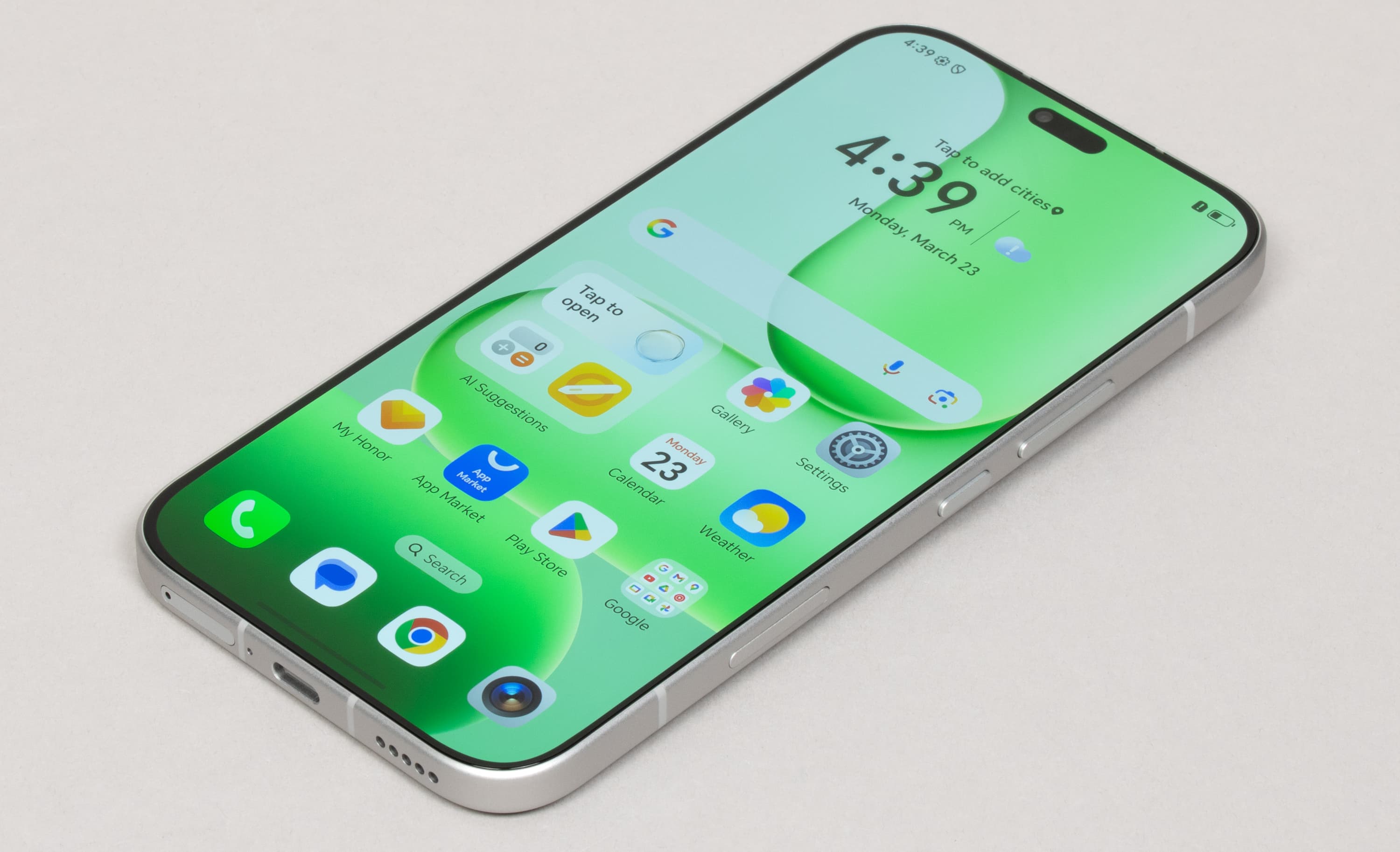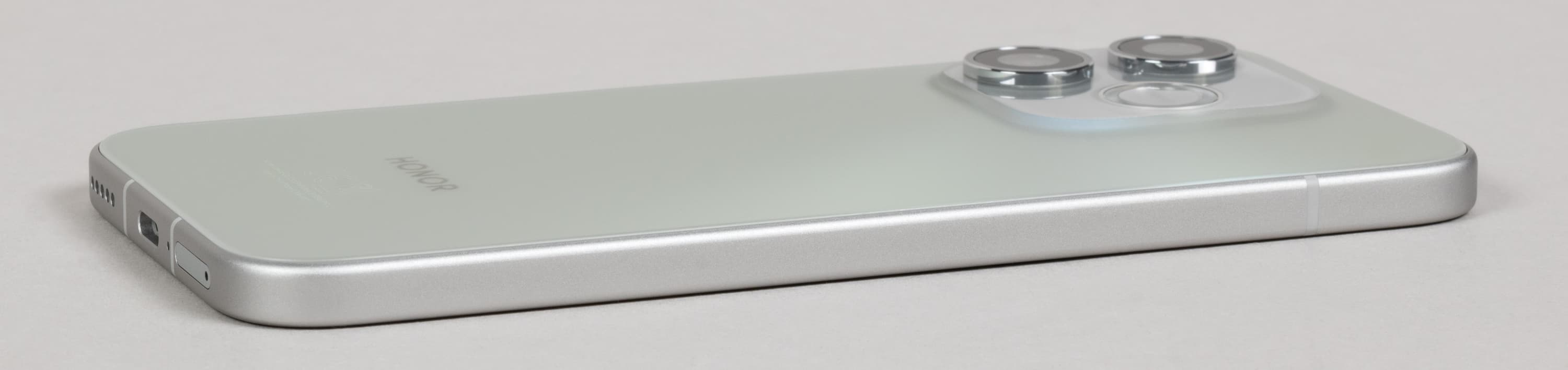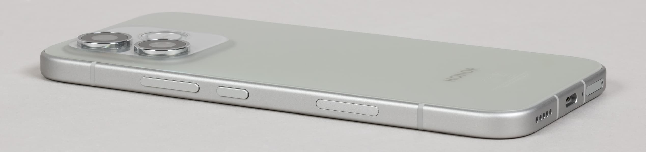 Согласно, опять же, современной моде, на боку установлена еще одна, дополнительная кнопка, для быстрого вызова приложений или функций, которые можно задать самостоятельно (Honor называет ее «AI-кнопкой»). Кнопка механическая, но установлена вровень с поверхностью, ее нужно вдавливать, случайно она не нажмется, и это огромный плюс по сравнению с решениями конкурентов. Те, во-первых, чаще устанавливают эту кнопку на противоположном боку, а во-вторых, делают податливой. И как следствие, при взятии телефона в руку такая кнопка непреднамеренно нажимается. Здесь такое невозможно.