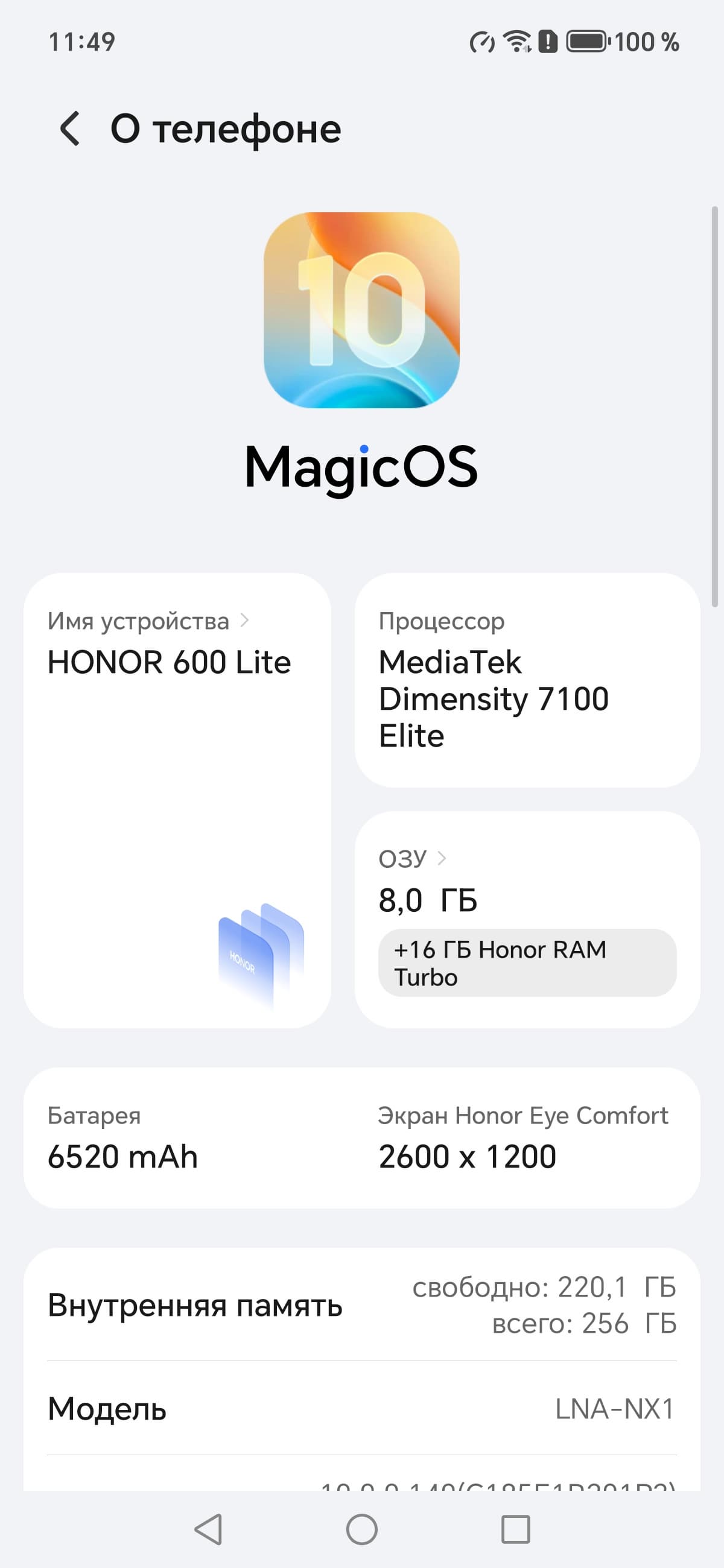 - Операционная система Android 16, MagicOS 10