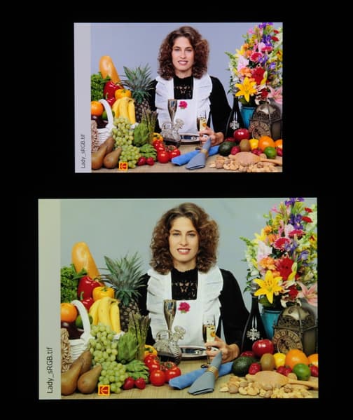 Отметим, что на экранах с уширенным цветовым охватом (без соответствующей коррекции) цвета́ обычных изображений, оптимизированных для устройств sRGB, выглядят неестественно насыщенными. Отсюда и рекомендация: в большинстве случаев смотреть кино, фотографии и все естественное лучше при выборе профиля Обычные.
