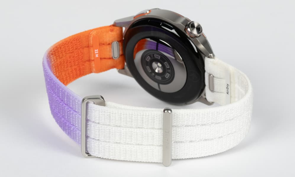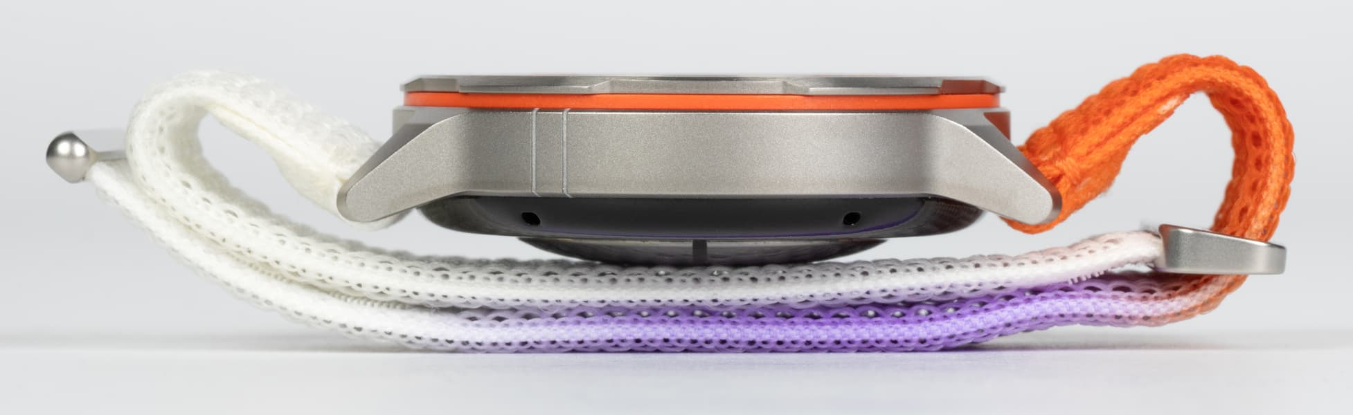 Таким образом, нет никаких проблем купить альтернативный вариант ремешка. Впрочем, комплектные оптимальны для этой модели и по стилю, и по материалам. Особо отметим необычное цветовое решение нейлонового ремешка — плавный переход от оранжевого к сиреневому и белому.