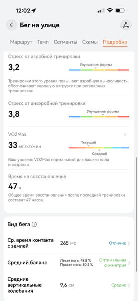 Обратим внимание на такие показатели, как «средние вертикальные колебания», «среднее время контакта с землей» и «средний баланс», важные именно для тех, кто серьезно занимается бегом. Далеко не каждые умные часы отслеживают такие параметры.