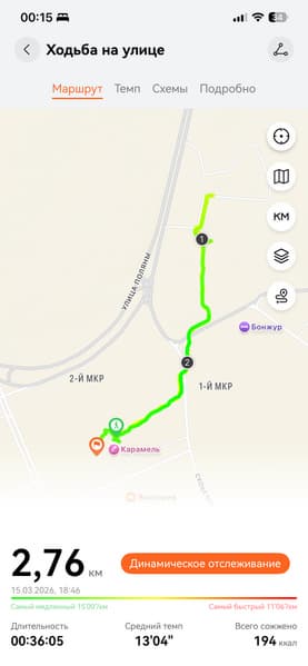 Точность можно оценить и по линии на карте. И если с велотренировкой это не столь заметно, поскольку там движение более прямолинейное, то в случае с ходьбой как раз видно, как часы фиксируют малейшие отклонения. Разумеется, автоматическая приостановка/возобновление тренировки работают и здесь.