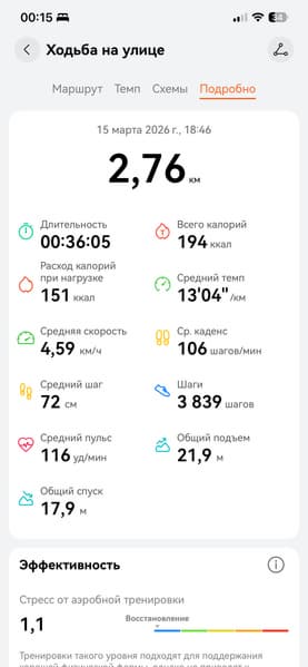 Впрочем, подобное мы видели в умных часах Huawei и ранее. А вот что оказалось для нас сюрпризом, так это очень чуткое автоматическое распознавание движения/остановки. Допустим, вы остановились буквально на 10 секунд перед светофором — и часы тут же приостанавливают тренировку. Стоит вам поехать — и она автоматически возобновляется.