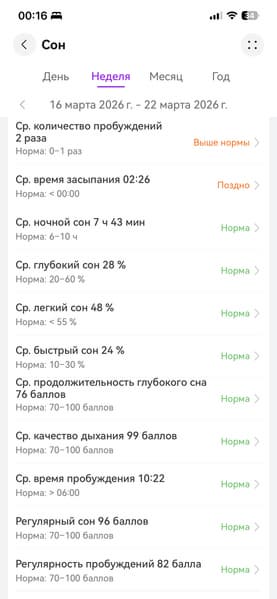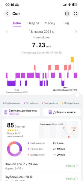 Нам понравилось, что часы корректно распознают дневной сон и предлагают глубокий анализ ночного сна, включая отслеживание дыхания.