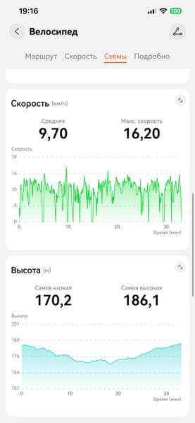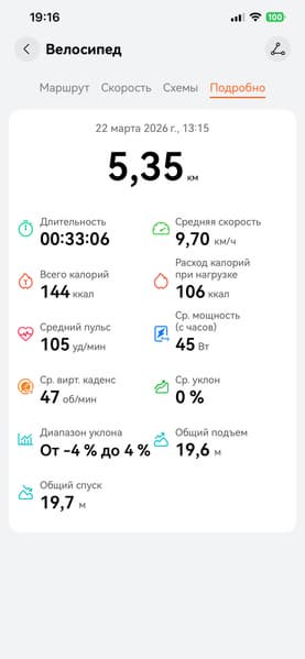 Но главное, для чего создавалась модель Watch GT Runner 2, это всё же спорт. Поэтому мы не могли не протестировать ее в разных режимах тренировок. Ниже — результаты велопоездки.