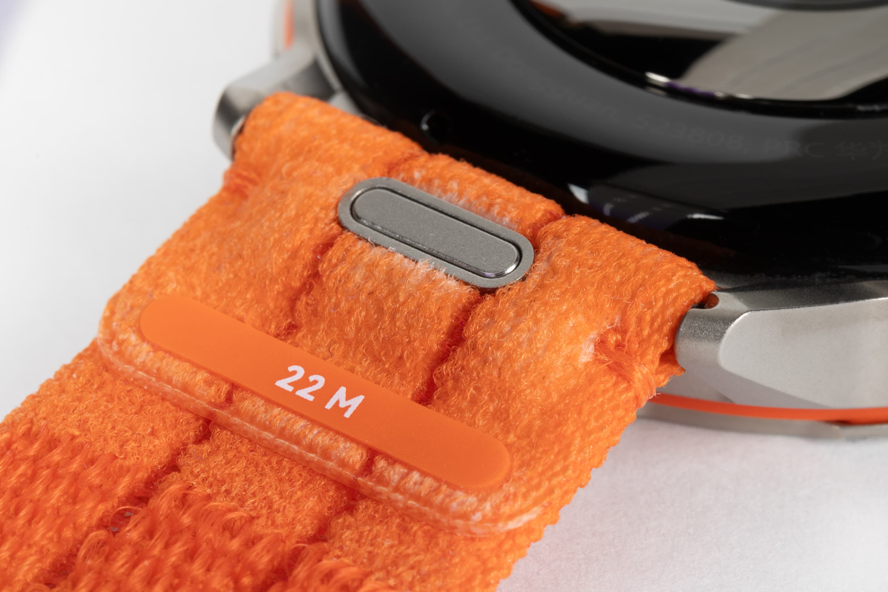 Ремешок имеет стандартную ширину 22 мм и крепится на тонких спицах. Чтобы отсоединить половинку ремешка от металлических петель, достаточно нажать на маленькую кнопочку у основания.