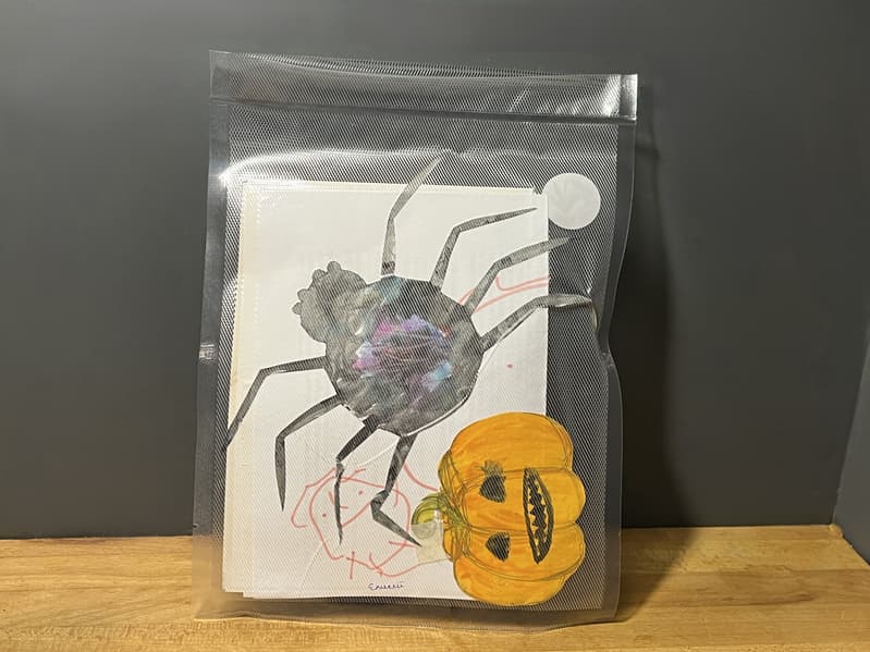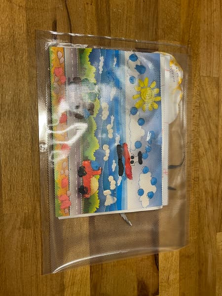 Чтобы проверить режим ручного управления вакуумацией и использовать отдельную функцию запайки, мы решили взять детские рисунки и поделки и сделать «Капсулу времени», которая сможет долгие годы храниться в безопасности без доступа воздуха.