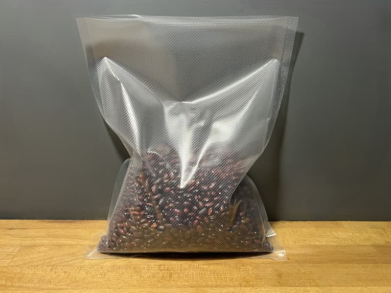 Прибор отлично выкачал воздух из пакета, превратив фасоль чуть ли не в кирпич.