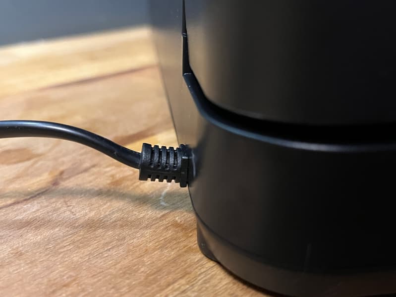 Приступая к работе мы установили устройство на рабочую поверхность и отметили для себя первый небольшой недостаток — кожух шнура, выходящий с тыльной стороны, очень твердый и сильно выпирает и устройство будет невозможно поставить вплотную к стене даже при хранении.