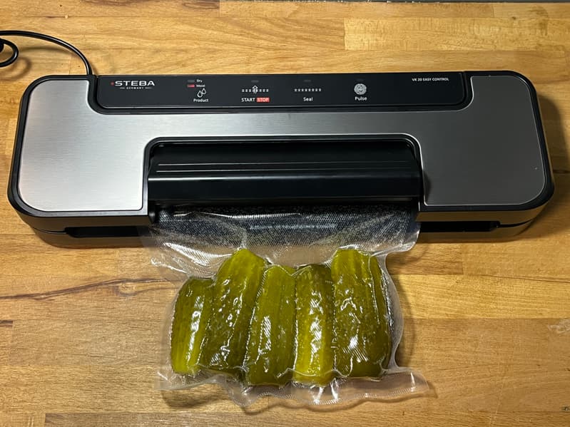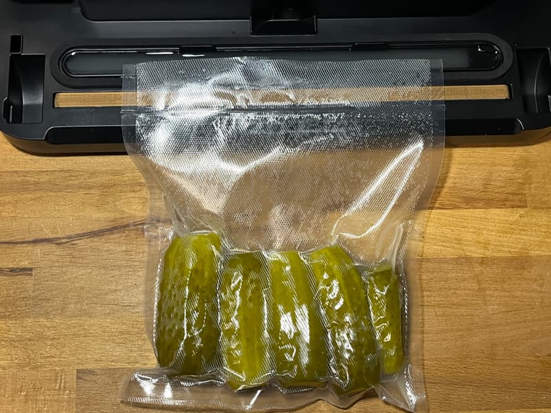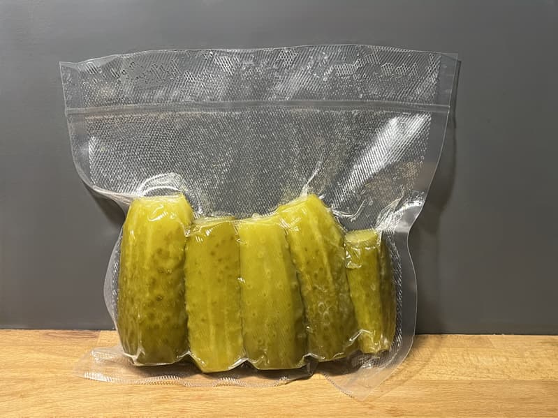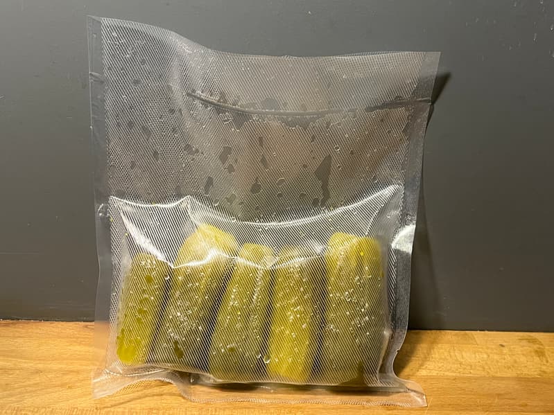 Чтобы проверить режим влажной вакуумации, мы подготовили соленые огурцы.