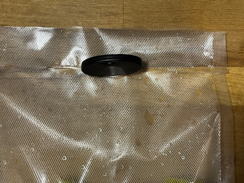 Сделали шов на дно, перевернули пакет открытым краем и воспользовались влажным режимом вакуумации.