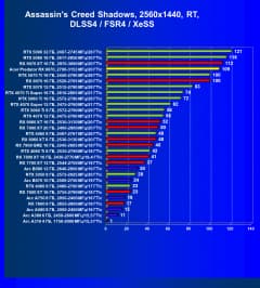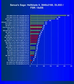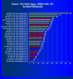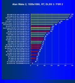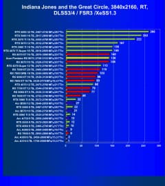Результаты тестов со включенной аппаратной трассировкой лучей и/или DLSS/FSR/XeSS в разрешениях 1920×1080, 2560×1440 и 3840×2160