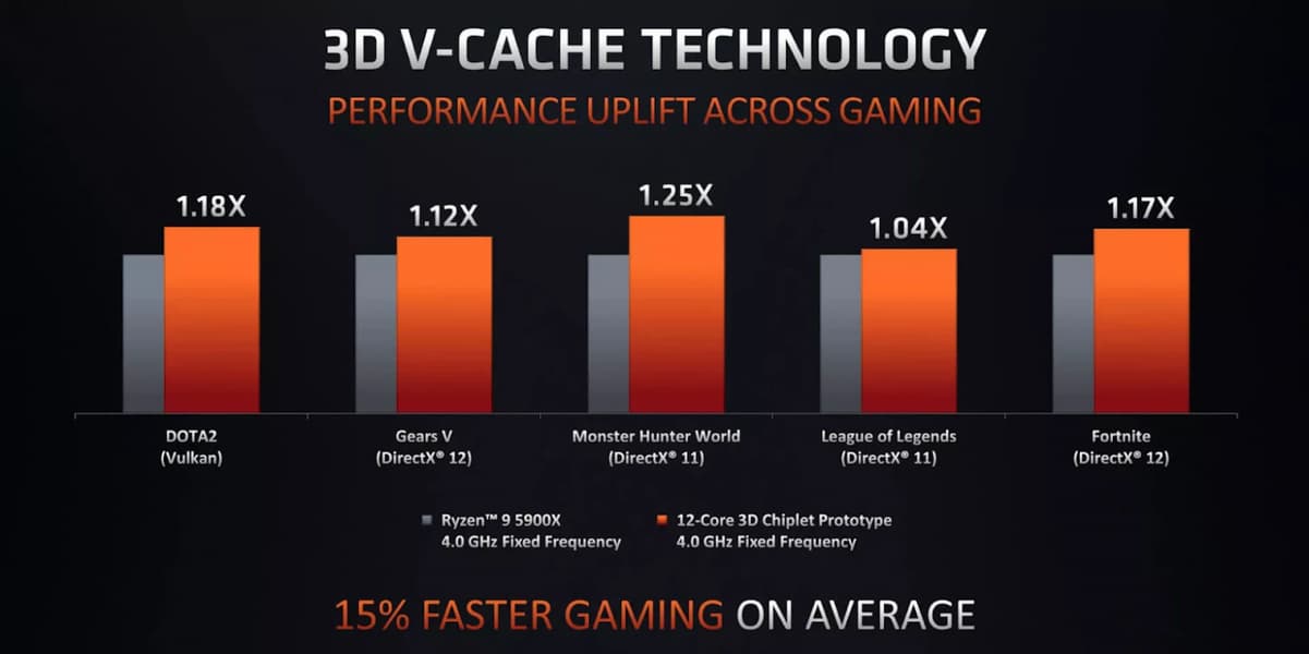 Мы уже не раз рассказывали историю процессоров AMD, предназначенных для достижения наибольшей производительности в играх. Ранее в этой сфере долгое время имела преимущество компания Intel, предлагая высокочастотные вычислительные ядра с быстрым и емким кэшем, а решения AMD отставали от них по этим характеристикам, а поэтому уступали и в играх. Понятно, что AMD хотела это изменить, и воплотила специальную подсерию процессоров в основном для игровых применений, отличавшуюся существенным улучшением подсистемы кэширования — для этого они применили технологию 3D V-Cache, увеличивающую объем кэш-памяти последнего уровня при помощи дополнительного кристалла со статической памятью, устанавливаемого на один из кристаллов с вычислительными ядрами.
